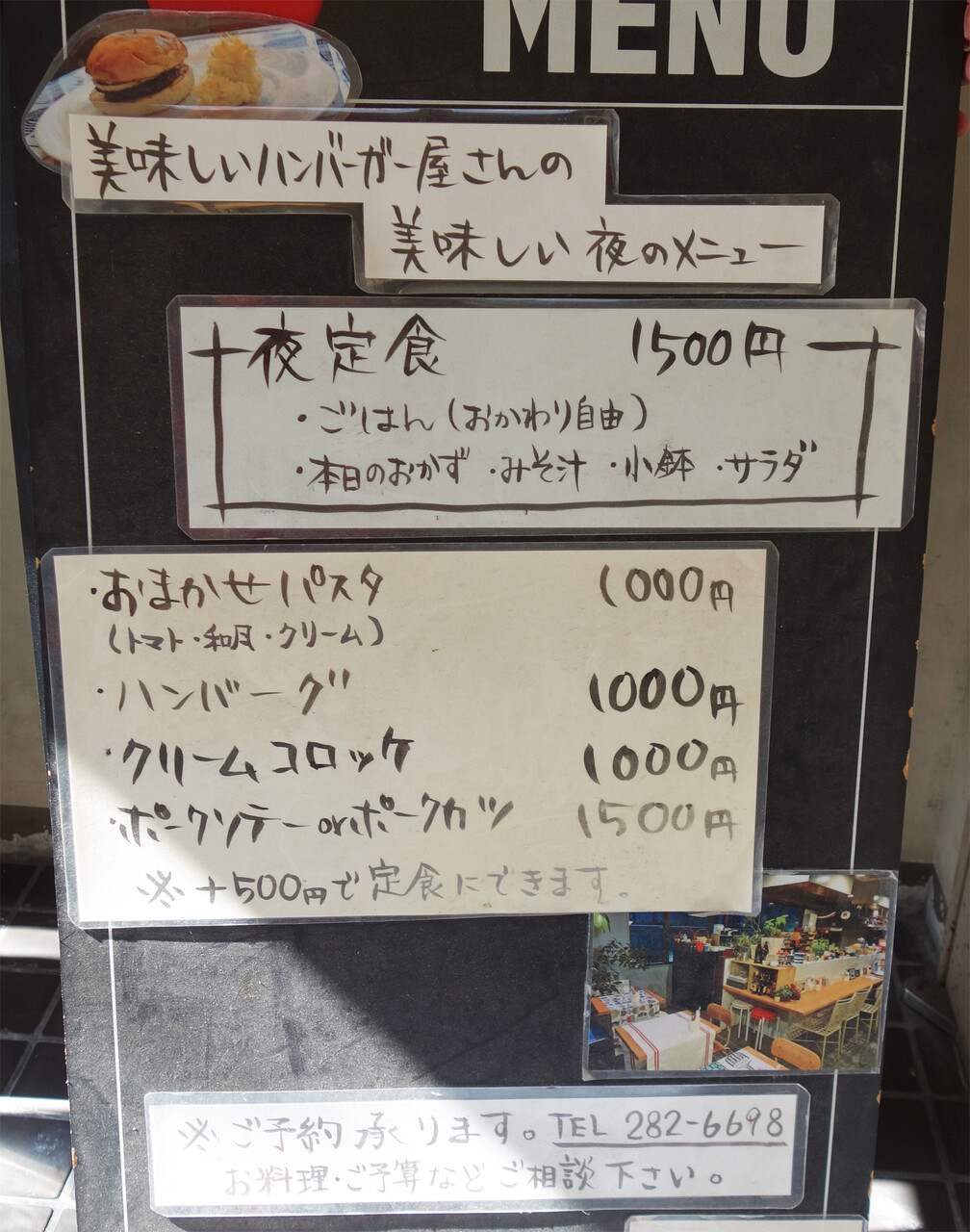 地下鉄の中洲川端駅や呉服町駅に近い、博多区綱場町にあるハンバーガーと家庭料理のお店です。