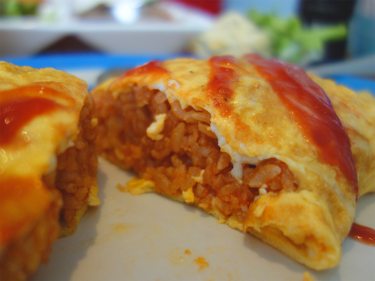 最近ふわとろ系やデミグラスソース仕立ての御馳走オムライスが多い中、超オーソドックスなやつが登場しました。