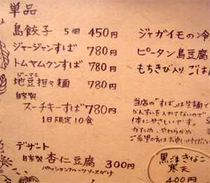 『ジャージャンすば』とは、中華の肉味噌がかかった麺料理、炸醤麺(ジャージャンめん・ジャージャーめん)のコトらしく、『そば』のコトを石垣島の方言で『すば』と言うらしいです。