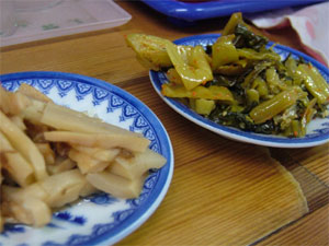 入り口に漬物(辛子高菜)やメンマ煮が置いてあって、小皿に取り放題でした。
