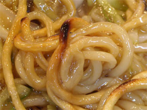 焦げ目がついた太麺の香ばしさと醤油がきいたあんかけ野菜が合います。