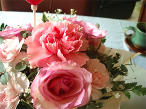 リビングのテーブルにキレイなフラワーアレンジが。