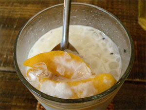 具は下のほうに溜まるので、まずは冷たいココナツミルクを楽しみ、