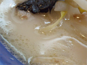 多くの脂やタンパク質がスープの中に細かく攪拌されている模様。
