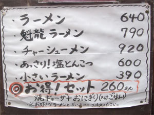 子供用や小食のヒト向きか小ラーメン390円もありました。