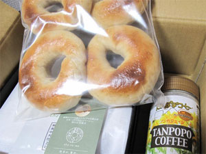 ベーグル・抹茶バターケーキ・たんぽぽコーヒー。