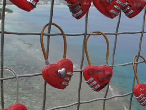 展望台のフェンスには、可愛いハート型の錠前がたくさんぶら下がってます。