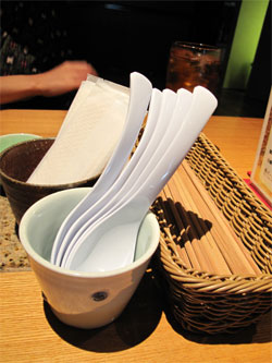卓上には、ウェットナプキンとレンゲ。