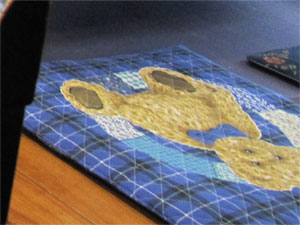 座布団はクマちゃんのキルティング座布団だし(笑)。