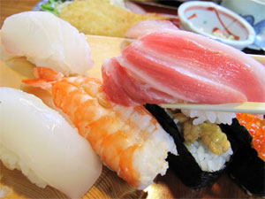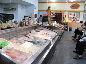 建物はひとつで、お魚屋さんの隣がお寿司屋さんになってます。