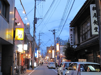 夜の久留米の飲食店街。