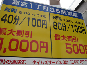 専用駐車場はありませんので、隣のコインパーキングに駐車。