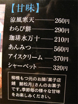『柳橋もつ元』さんのスイーツメニュー。