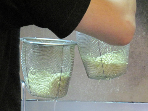 大将と思われる男性の麺の湯切りパフォーマンスを楽しく拝見。