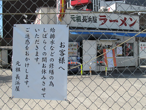 :ミーハーとしては撮らずにおられんね(笑)。休業中のガンソ(元祖長浜屋)。