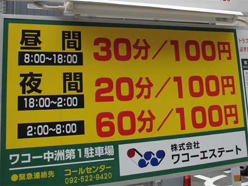 ココには停められず、もう少し離れた30分200円のトコに停めました。