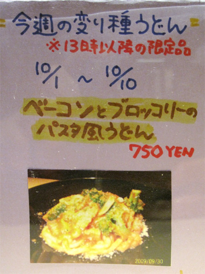 この週は『ベーコンとブロッコリーのパスタ風うどん 750円』。