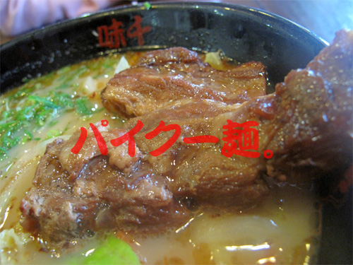 今日は、味千拉麺で、熊本豚骨・パイクー麺(排骨麺)です。