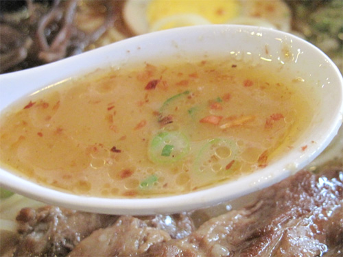熊本豚骨ラーメン特有の香味油(千味油)入りのスープです。