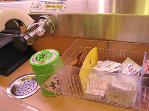 卓上にはお醤油やワサビの小袋がたくさん。