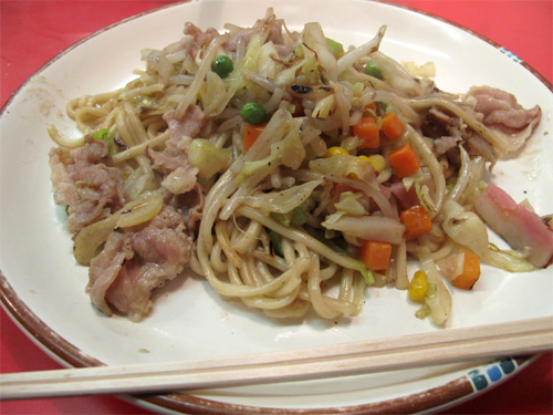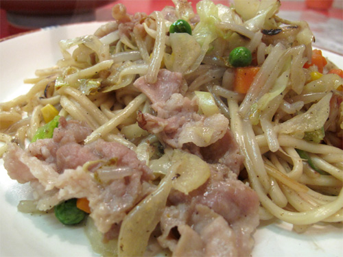 少し焦げ目がついた柔らかい麺が