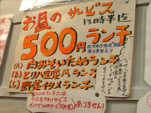 13時半までですけど、お得なワンコイン定食もあります。