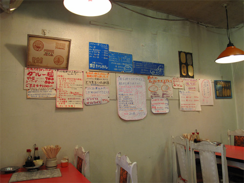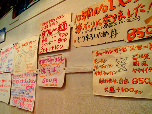 ご主人の考案したオリジナルメニューや定食が壁面に貼り出されてます。