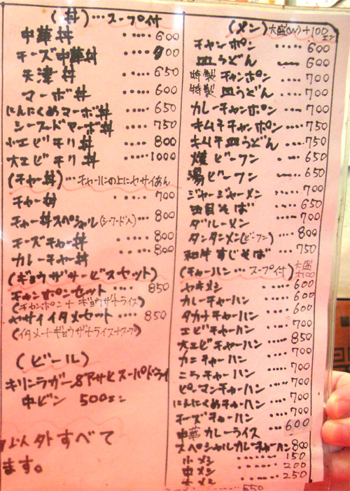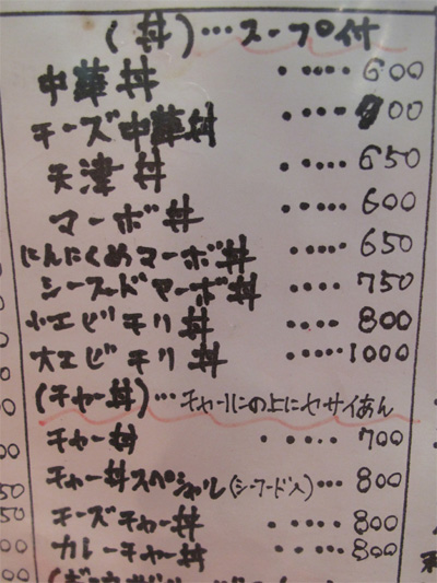こちらの手描きのチャーハンメニューも面白い。