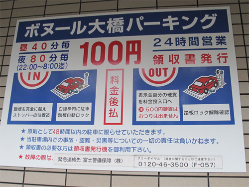 今日の駐車場。40分100円でした。