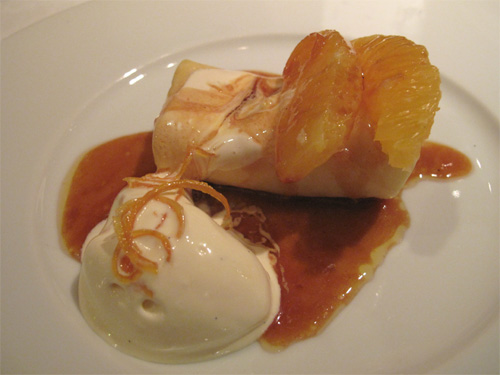 半数はオレンジ風味のクレープシュゼット・バニラアイス添え。