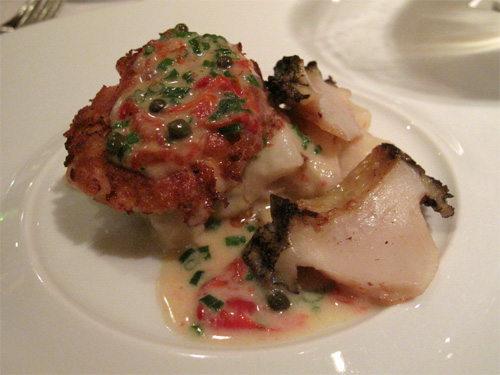 たら白子のムニエル・ケッパー風味のソース。