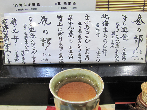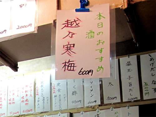 ビールの後は、本日のおすすめ越乃寒梅を冷酒で計2杯頂きました。
