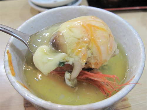 同僚が頼んだ、すし定食の茶碗蒸しが最初に供されます。