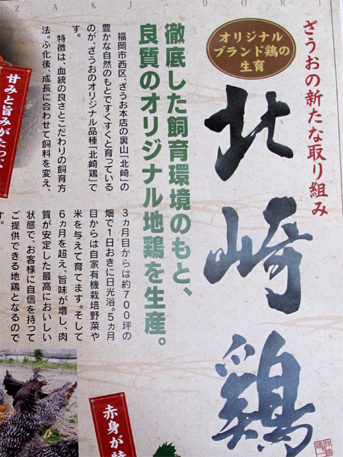 北崎鶏とは、ざうおが開発した、地鶏の『天草大王』など原種を掛け合わせた地鶏で、