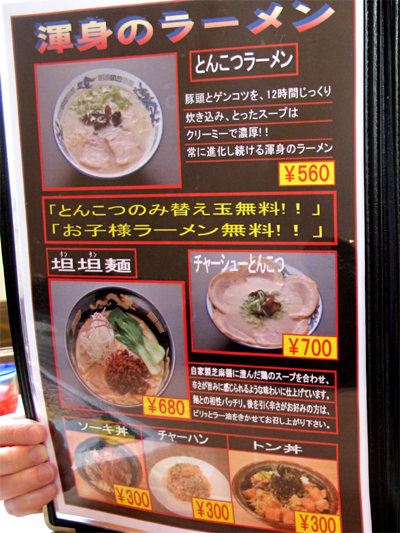 とんこつラーメン560円。
