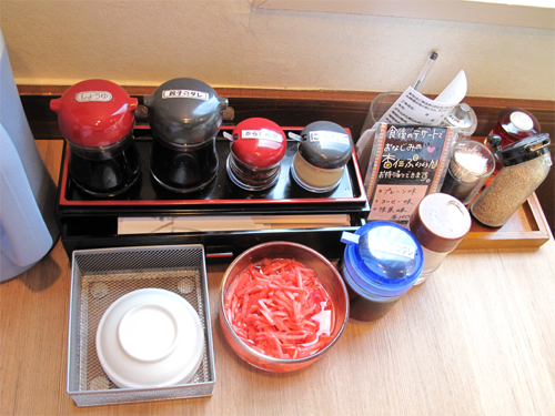 卓上は調味料がたくさん。