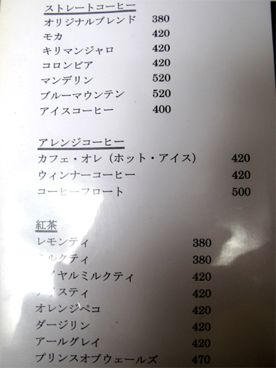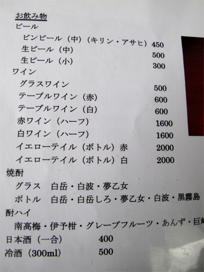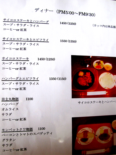参考までにメニューです。