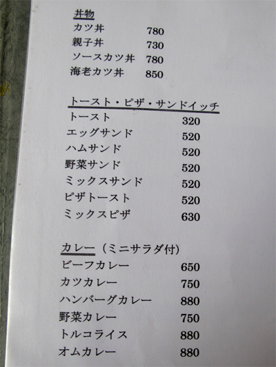 喫茶店ランチの粋にとどまらず、ファミレスくらい豊富なメニュー構成です。