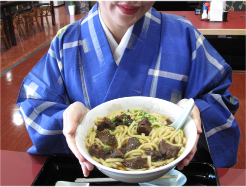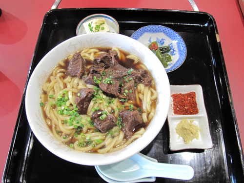 アタシは、ブログ記事で見た人気?の小倉名物肉うどんにしました。