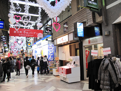 福岡市中央区天神・繁華街中心部にある新天町(しんてんちょう)アーケード。