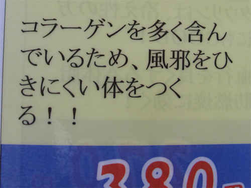 『コラーゲンを多く含んでいるため、風邪をひきにくい体をつくる!』