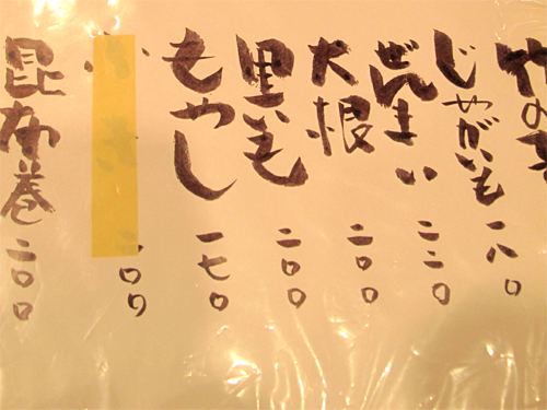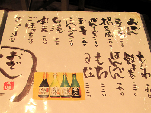 おでんのメニュー。