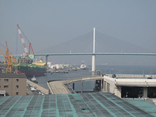 遠く前方に福岡都市高速・荒戸大橋が見えます。
