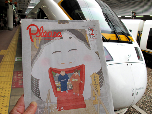 JR九州が発行する車内フリーペーパー『プリーズ』の表紙絵が櫛田神社の節分祭りのお多福門でした。