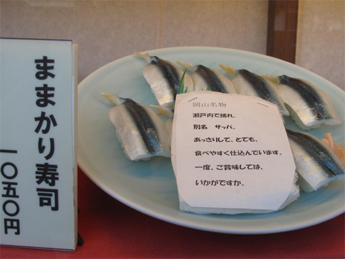 街角の飲食店で見かけた、ショーケース見本のままかり寿司。