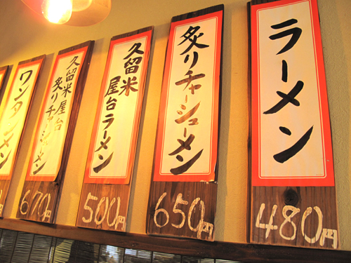 基本のラーメンより20円高い、久留米屋台ラーメン500円。