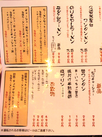 サブメニュー?に久留米屋台ラーメンってのがあります。
