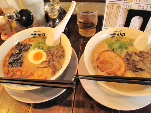 呼び戻しと昔屋台風の久留米系豚骨2種♪@天砲ラーメン