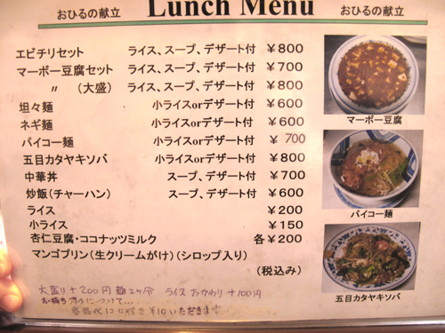 ランチメニューです。