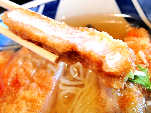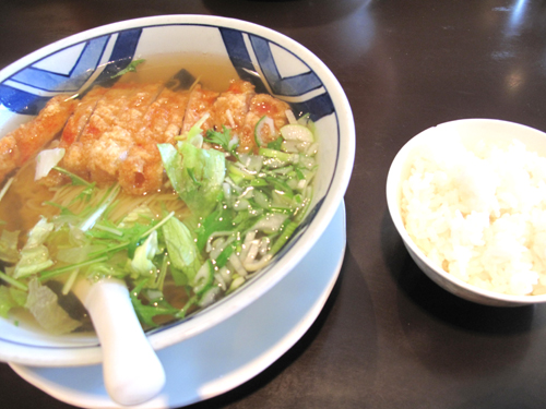 揚げ物がのった麺ですが、スープはあっさりの鶏ガラスープなので、